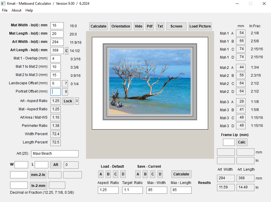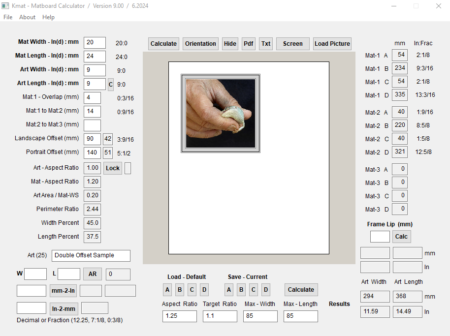 Inch mat with metric photo, bottom weighted, double mat, portrait orentiation
